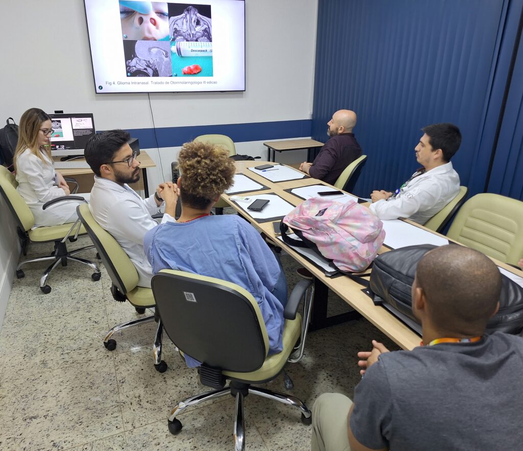 Na tarde desta segunda-feira, 23 de junho de 2025, na Sala de Reunião da OTICS Rio Souza Aguiar, foi realizada mais uma Sessão do Serviço de Otorrino supervisionada pelo Drº. Edio Júnior Cavallaro Magalhães – Chefe do Serviço de Otorrinolaringologia do HMSA. Durante a sessão, que ocorre semanalmente, a Drª. Emilia Isabel Ramos Freile (Pós-graduando do 1º ano de Otorrinolaringologia), apresentou os seguinte temas: Malformações Congênitas Nasais.
