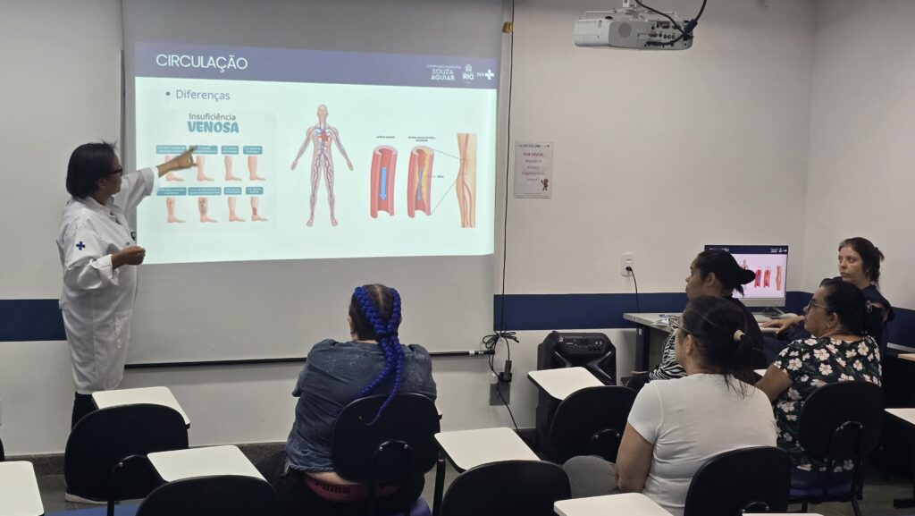 Na tarde desta terça-feira, 7 de abril de 2026, foi realizada uma roda de conversa no auditório do 5º andar da Estação OTICS Rio Souza Aguiar, voltada aos acompanhantes dos pacientes internados nas enfermarias. O encontro teve como objetivo oferecer orientações gerais sobre a assistência prestada e a estrutura do local. Durante a atividade, foram distribuídos guias rápidos do paciente e do acompanhante, além de serem realizados esclarecimentos importantes sobre o funcionamento da unidade.